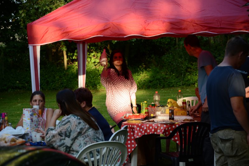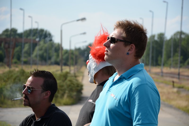 Doch viel Zeit bleibt nicht, der nächste Kumpel hat uns entdeckt und kommt zu uns rüber – und da die Beschallung im Zelt diesen Abend doch etwas laut ist (am Samstag war es viel besser), gehen wir etwas raus vors Zelt – wo ich dann selbst den nächsten Bekannten entdecke. Jawohl, hier sind wir am Ziel unserer Reise