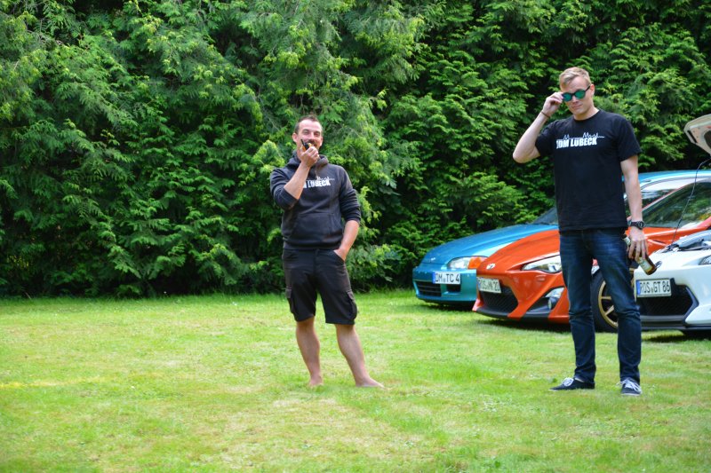 Das Essen war wieder lecker und reichlich, toll, dass die Jungs in der Pizzeria da auch mit solch großen Bestellungen leckere Ware hinbekommen. Und auch die neue Idee mit dem Erfühlen der Fahrzeuge fand ich gut – kam auch bei meinen Kindern gut an (wenngleich der Papa helfen musste). Und uns fiel auf, dass auch einige ältere Semester mal über den Platz streiften – ganz langsam scheint sich rumzusprechen, dass wir Mitsubishi-Fahrer niemanden beißen
